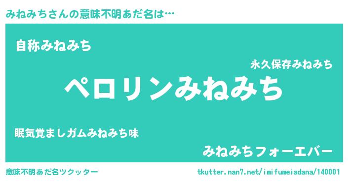 | 男性向けラノベタイトル風あだ名 | 『ミネミチアートオンライン』 |