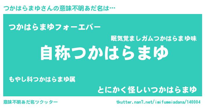 | 欧米人風あだ名 | 『アンジェラ・つかはらまゆ』 |