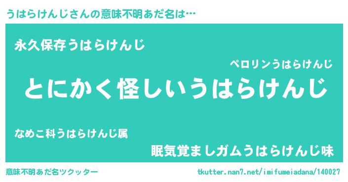 | ヘコむあだ名 | 『うはを』『うはらけんじ(笑)』 |