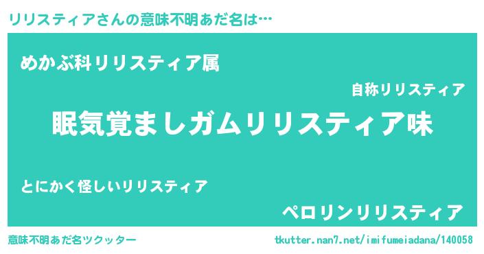 | 男性向けラノベタイトル風あだ名 | 『ノーゲーム・ノーリリスティア』 |