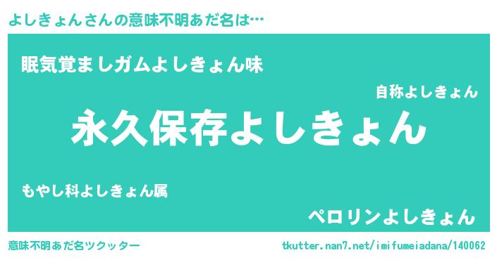 | 女子向けラノベタイトル風あだ名 | 『異世界でカフェよしきょんを開店しました。』 |