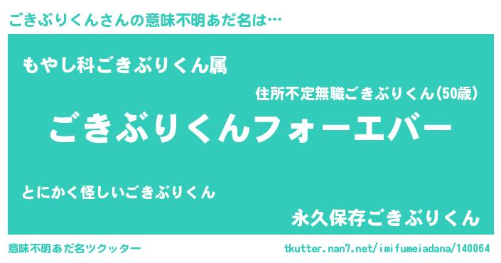 | 男性向けラノベタイトル風あだ名 | 『やはりごきぶりくんの青春ラブコメはまちがっている 』 |