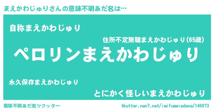 | 胡散臭い通販商品みたいなあだ名 | 『億万長者になれる霊験あらたかなお札…その名も「まえかわじゅり」』 |