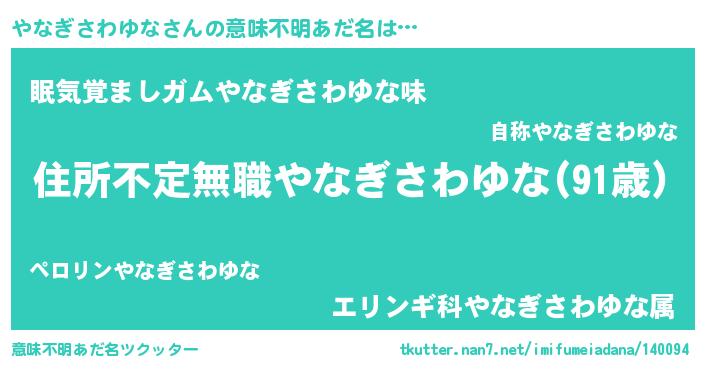 | 欧米人風あだ名 | 『ダレノガレやなぎさわゆな』 |