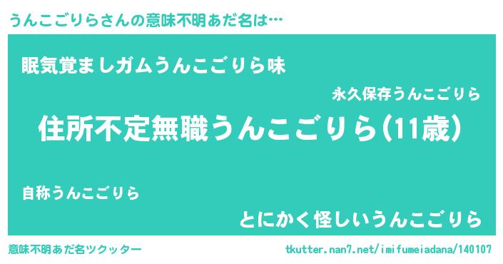 | ヘコむあだ名 | 『うんを』『うんこごりら(遠い目)』 |