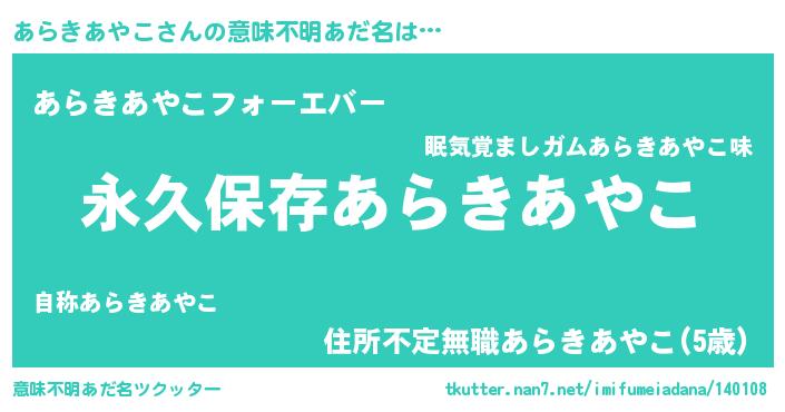 | 胡散臭い通販商品みたいなあだ名 | 『来世でも幸せになれる水素水…その名も「あらきあやこ」』 |