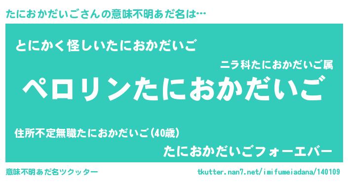 | ポケモン風あだ名 | 『タニチュウ』『ヒタニオカダイゴ』 |