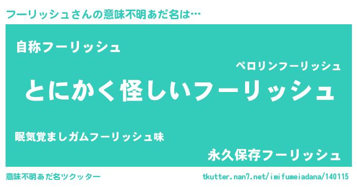 | ヒーロー風カッコイイあだ名 | 『魔戒騎士フー』『ネオフーリッシュ』 |