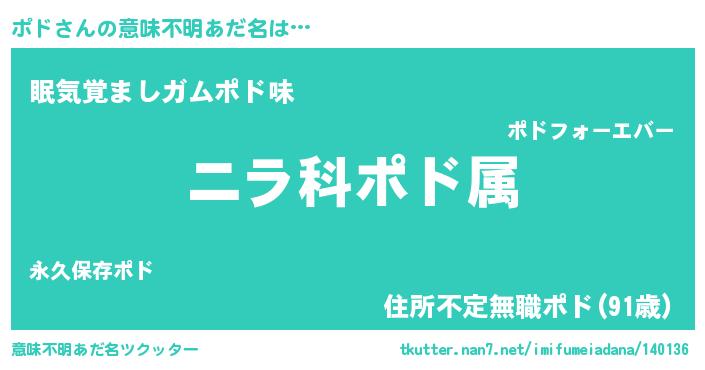 | 男性向けラノベタイトル風あだ名 | 『ポド~年齢イコール彼女いない歴の魔法使い~』 |