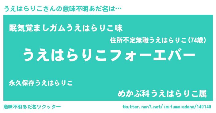 | 欧米人風あだ名 | 『うえはらりこクリステル』 |