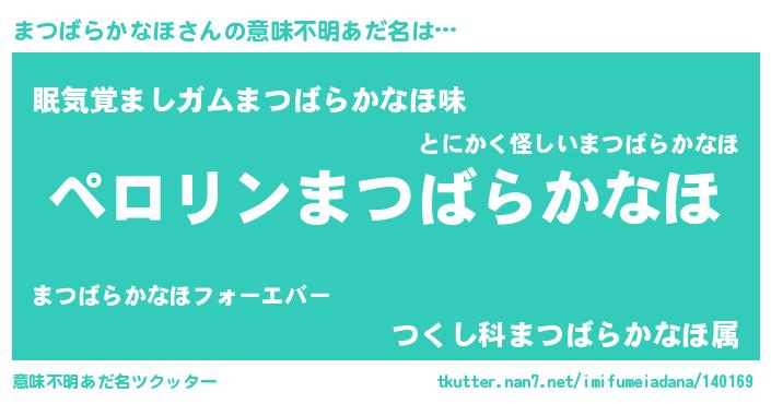 | 男性向けラノベタイトル風あだ名 | 『まつばらかなほの憂鬱』 |