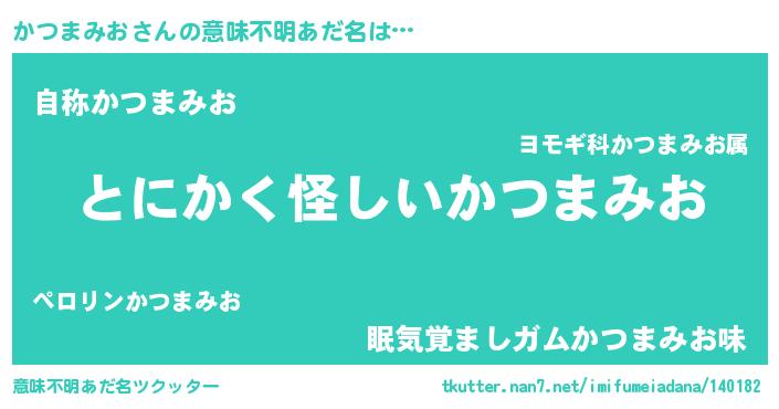 | 胡散臭い通販商品みたいなあだ名 | 『全米が絶賛したサプリメント…その名も「かつまみお」』 |