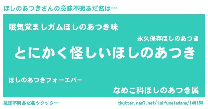 | ポケモン風あだ名 | 『ヒホシノアツキ』『ホックウザ』 |
