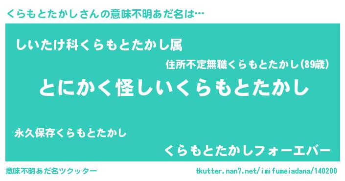 | 胡散臭い通販商品みたいなあだ名 | 『信頼と実績のペンダント…その名も「くらもとたかし」』 |