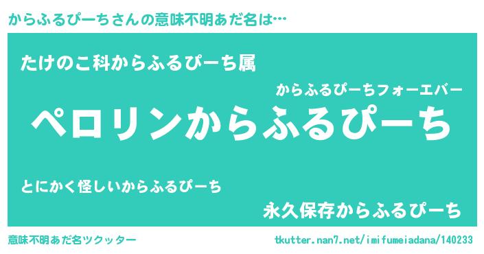| ヘコむあだ名 | 『からっふぃ~』『からふるぴーち(小並感)』 |