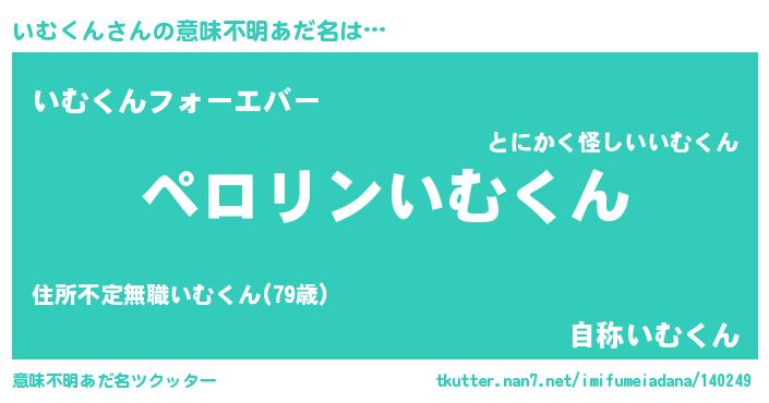 | 男性向けラノベタイトル風あだ名 | 『いむくんの憂鬱』 |
