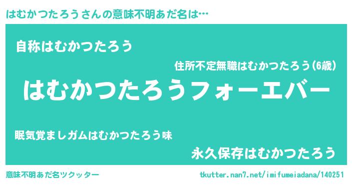 | 胡散臭い通販商品みたいなあだ名 | 『世界が平和になる高級そうな皿…その名も「はむかつたろう」』 |
