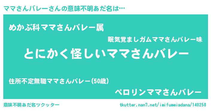 | 胡散臭い通販商品みたいなあだ名 | 『伝統あるサプリメント…その名も「ママさんバレー」』 |
