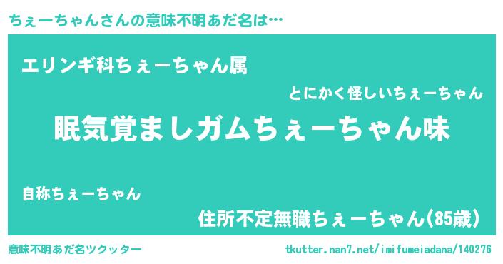 | 女子向けラノベタイトル風あだ名 | 『ちぇーちゃん恋絵巻』 |