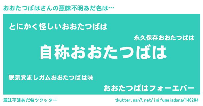 | 欧米人風あだ名 | 『おおたつばは・ステッグマイヤー』 |