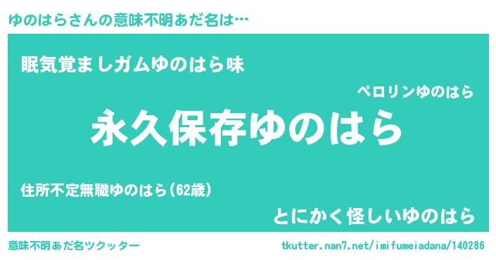 | ヘコむあだ名 | 『ゆのはら(笑)』『ゆのお』 |
