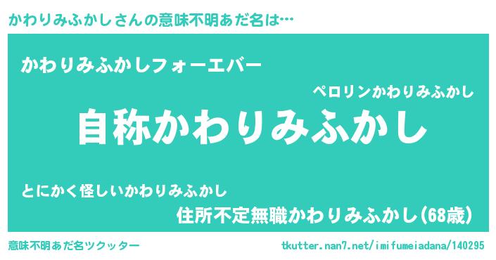 | 女子向けラノベタイトル風あだ名 | 『かわりみふかしストレイドッグス』 |