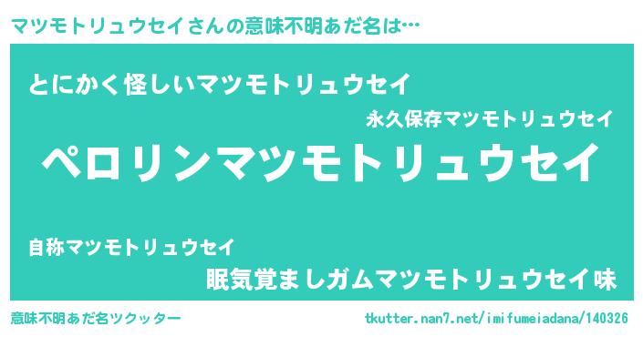| ヒーロー風カッコイイあだ名 | 『スーパーマツモトリュウセイ』 |