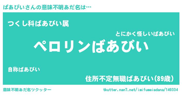 | 男性向けラノベタイトル風あだ名 | 『ばあびいの憂鬱』『魔弾の王とばあびい』 |