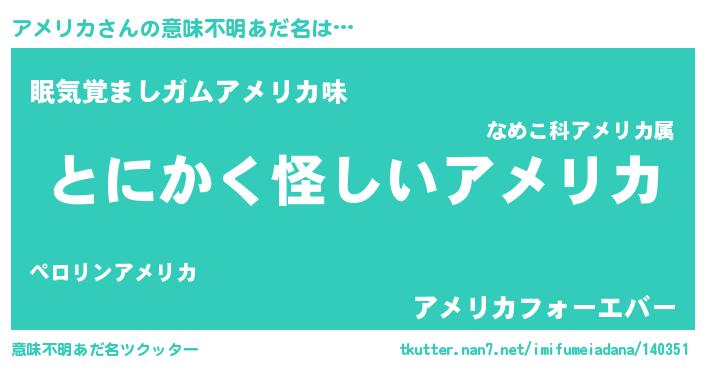 | 女子向けラノベタイトル風あだ名 | 『アメリカの卵を拾いまして』 |