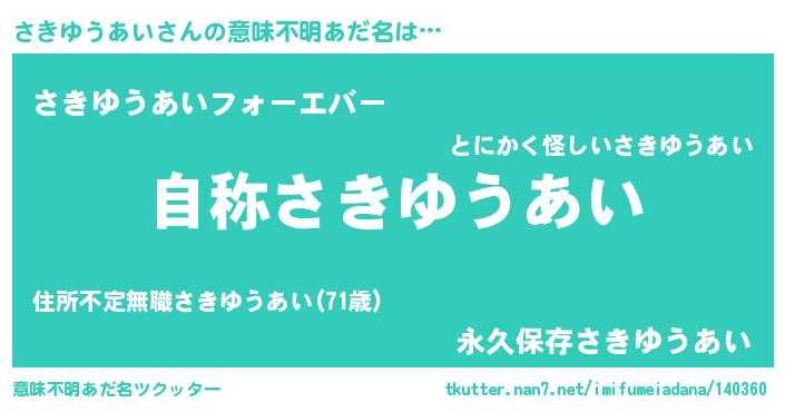 | 男性向けラノベタイトル風あだ名 | 『さきゆうあいに滅ぼされるだけの簡単なお仕事です』 |