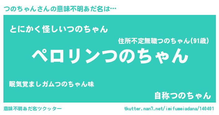 | 男性向けラノベタイトル風あだ名 | 『つのちゃんの憂鬱』 |