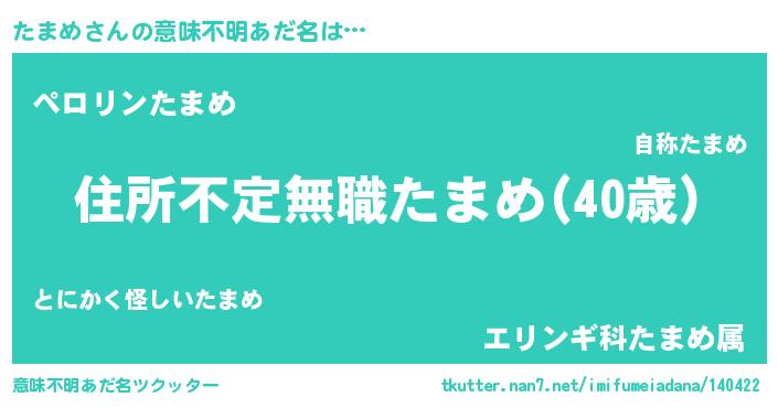 | 男性向けラノベタイトル風あだ名 | 『この素晴らしい世界にたまめを!』 |