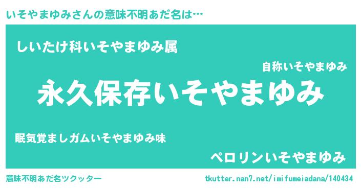 | 胡散臭い通販商品みたいなあだ名 | 『絶対に幸福をもたらす水素水…その名も「いそやまゆみ」』 |
