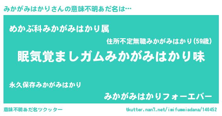 | 胡散臭い通販商品みたいなあだ名 | 『100人中100人が認めたマグネット磁石…その名も「みかがみはかり」』 |