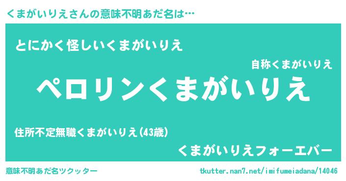 | 男性向けラノベタイトル風あだ名 | 『クマガイリエアートオンライン』 |