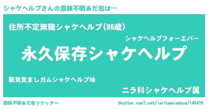| ヒーロー風カッコイイあだ名 | 『ネオシャケヘルプ』『仮面シャダー』 |