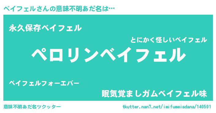 | 男性向けラノベタイトル風あだ名 | 『ベイフェルアートオンライン』 |