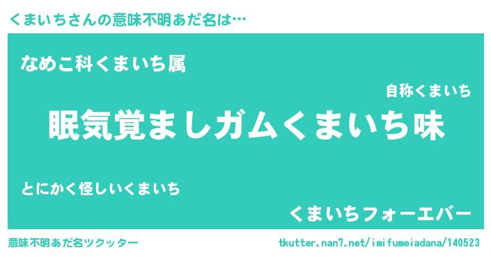 | 男性向けラノベタイトル風あだ名 | 『おまえをオタクにしてやるから、俺をくまいちにしてくれ! 』 |