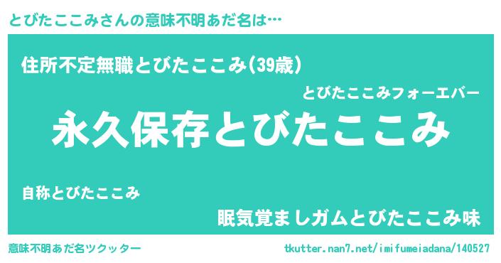 | 胡散臭い通販商品みたいなあだ名 | 『来世でも幸せになれる水素水…その名も「とびたここみ」』 |