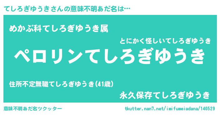 | 男性向けラノベタイトル風あだ名 | 『てしろぎゆうきの憂鬱』 |