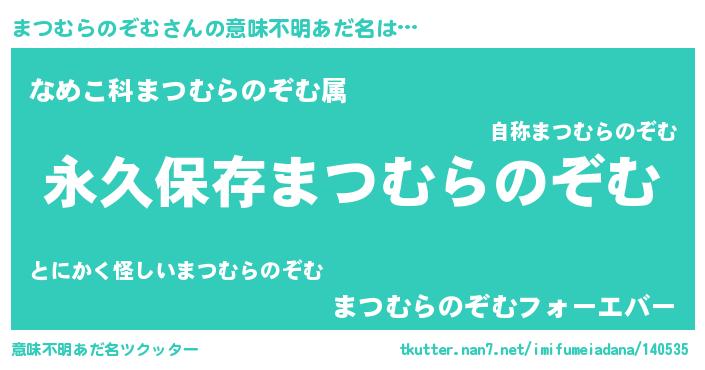 | 可愛いあだ名 | 『まつむらのぞむママ』『まつぷりん』 |