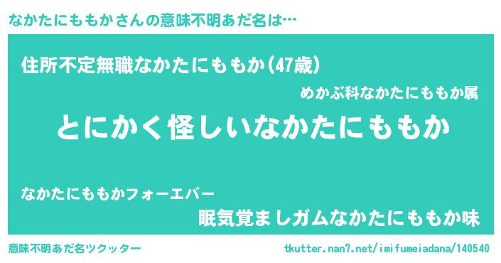 | 男性向けラノベタイトル風あだ名 | 『なかたにももかの嫁は女の子じゃないと思った?』 |
