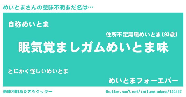 | ヒーロー風カッコイイあだ名 | 『愛の使者めいとま』『究極戦士メイトマ』 |