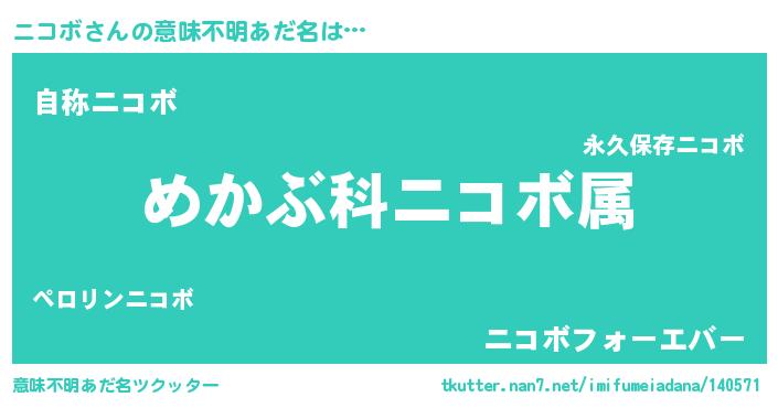 | 男性向けラノベタイトル風あだ名 | 『ニコボスレイヤー』 |