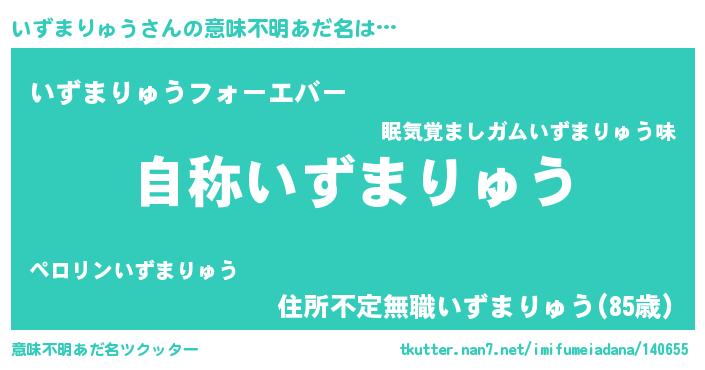 | 肩書あだ名 | 『いずまりゅう閣下』『いずまりゅう教官』 |