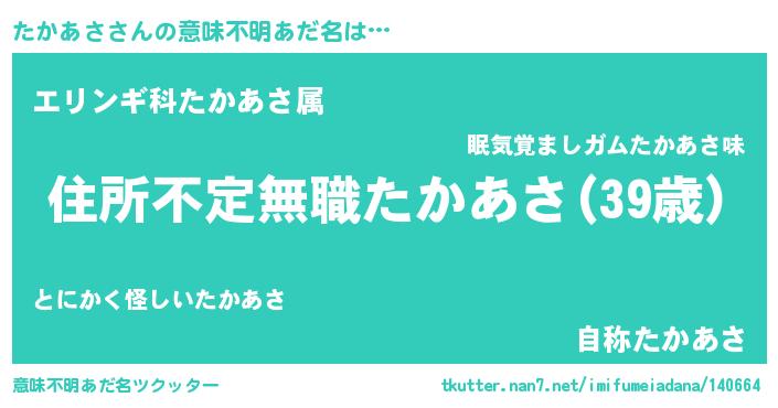 | ヘコむあだ名 | 『たか太郎』『たかあさ(笑)』 |