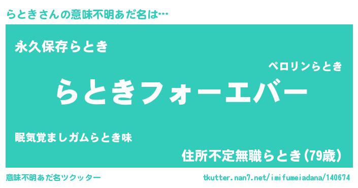 | ヘコむあだ名 | 『酢こんぶ』『らとき(笑)』『らとを』 |