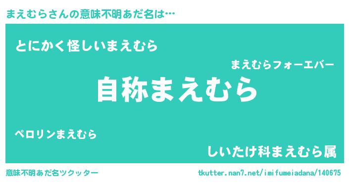 | 女子向けラノベタイトル風あだ名 | 『まえむらなんてお断りですっ。』 |