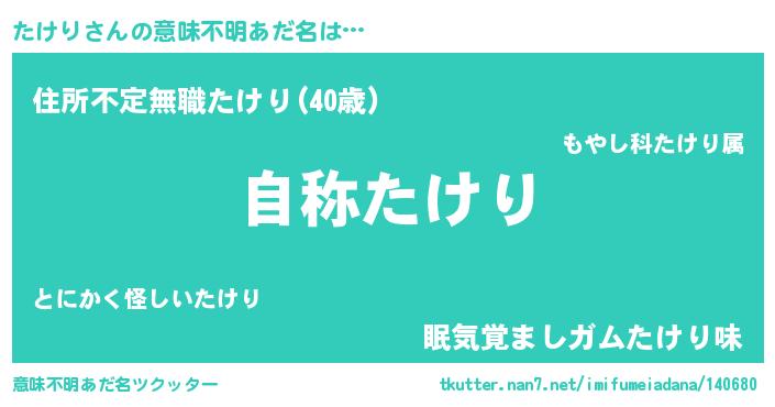 | ヒーロー風カッコイイあだ名 | 『究極戦士タケリ』『仮面タケダー』 |