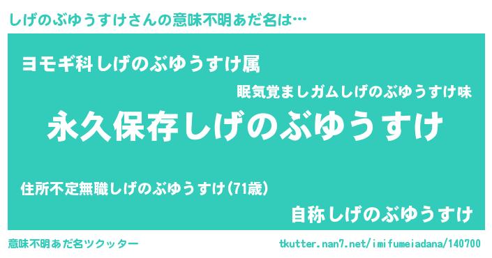 | 男性向けラノベタイトル風あだ名 | 『しげのぶゆうすけという概念が存在しない退屈な世界 』 |